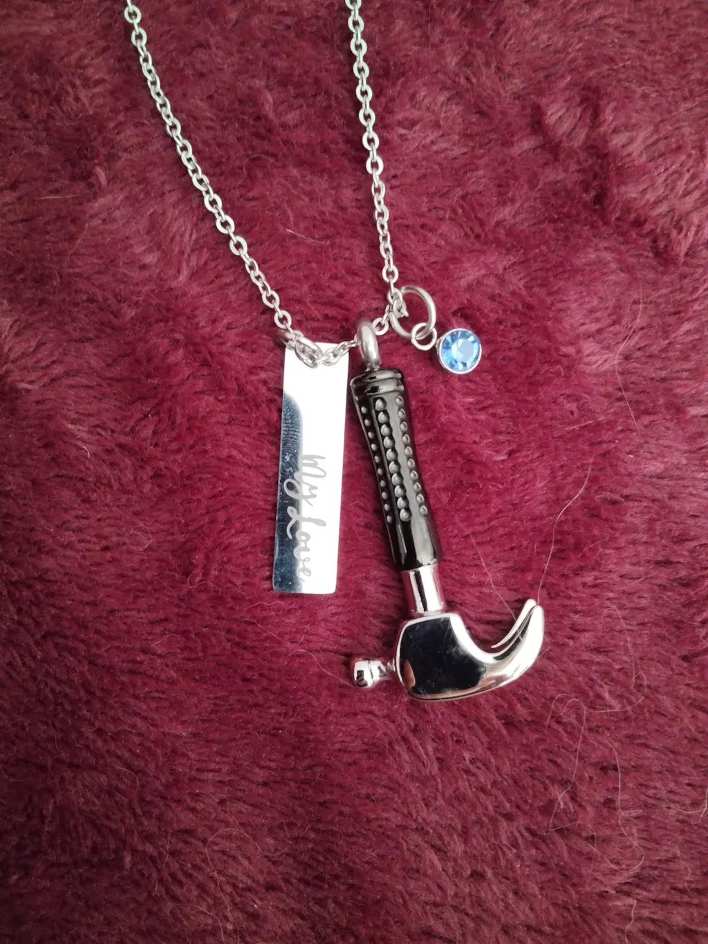 In life, we build so much: homes, families, relationships... whether it stands for physical construction or symbolic of the beautiful life they built, our Hammer urn necklace will remember them with honor. It is perfectly detailed with a black, textured handle and realistic head.